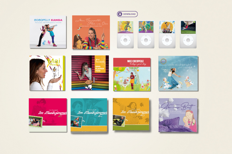 Physische CD im Paket: +Cocopelli Kanga +Mai Cocopelli und der kleine Yogi +Sing, kleiner Yogi +Wenn es Winter wird +Musikzimmer 1 +Musikzimmer 2 und +Musikzimmer 3 +Orchester CD +Todays Your Day +Ab ins Bett Download Album im Paket: + Floh&SO +Kinderlieder 1 +Im Wundergarten +Einmal Weltraum und zurück (Album + Playbacks)